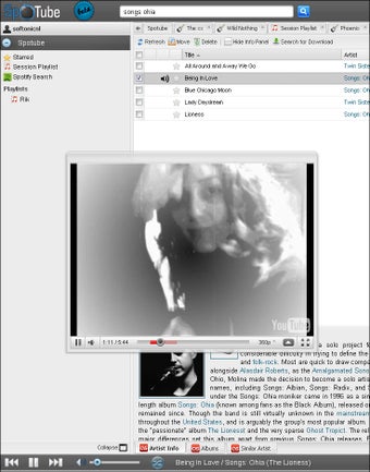 SpoTube's menu is helder ingedeeld, naar het voorbeeld van iTunes en Spotify. De interface barst echter al snel van de tabbladen, daar elke zoekopdracht een tabje opent. Dit is wat ons betreft onnodig. Daarnaast is het zoeken van liedjes via Spotify voorlopig omslachtig; hiervoor moet je namelijk vanuit Spotify een zogenaamde URI-link kopiëren en plakken.